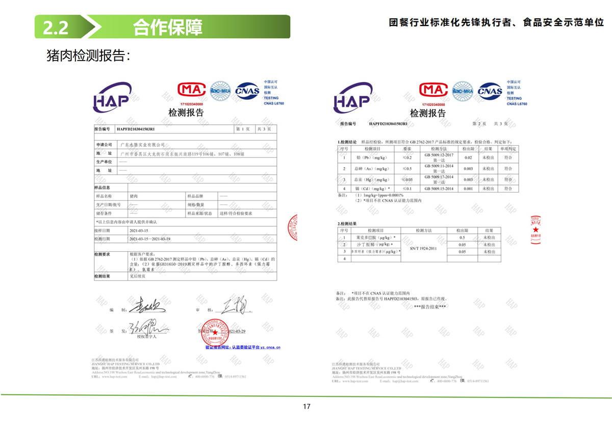 目前,公司具有高標準食品檢測室,為各行各業客戶提供安全、健康的綠色生態農副產品。成立以來保持零食品安全事故記錄,獲得客戶及行業內的廣泛贊譽。